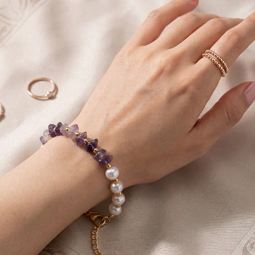 A colorful stone bead bracelet featuring polished natural beads in vibrant shades of turquoise, green, pink, amber, and yellow. Pairs well with summer outfits, casual looks like jeans and a tee, or layered with gold bracelets and watches for a more styled stack.